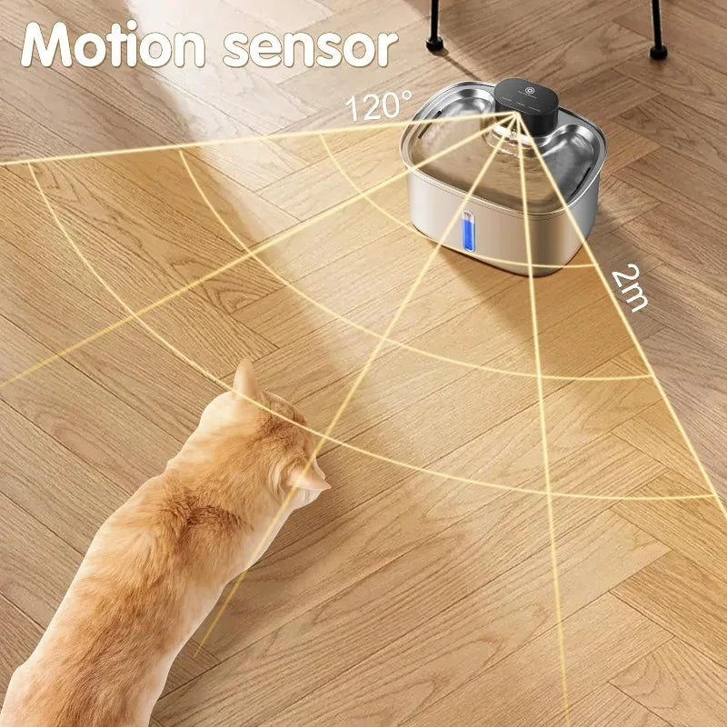 • Automatic Motion Sensor: Dispenses water only when pets are near, reducing waste.